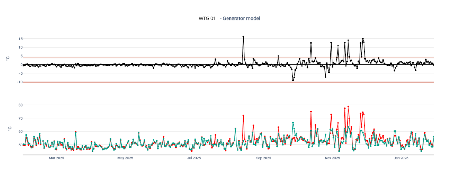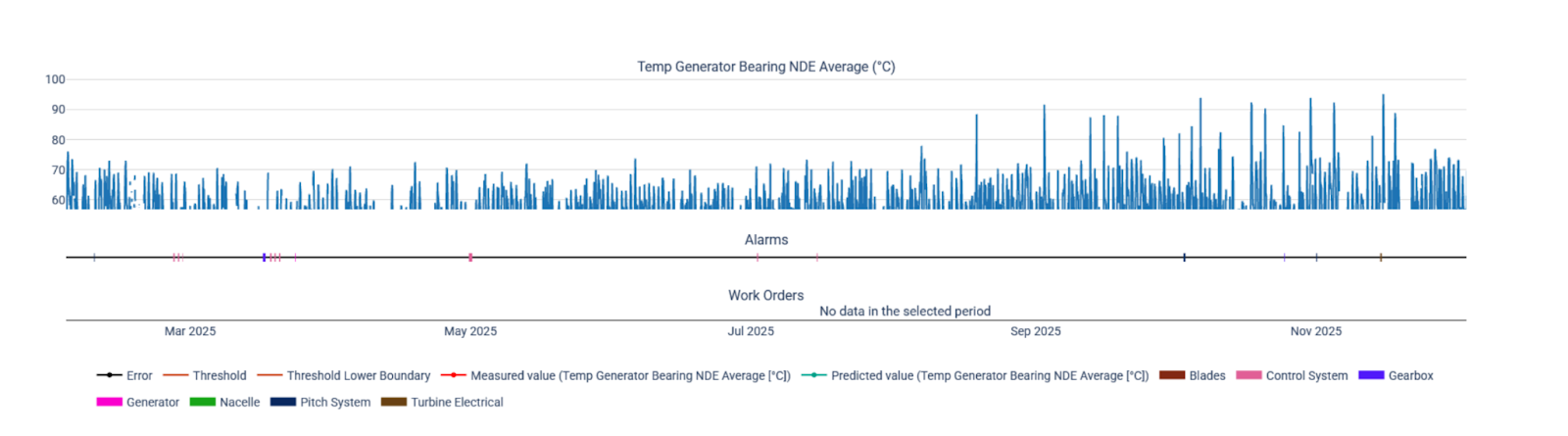 - + 10 °C: thermal delta of the turbine in direct comparison with the average of neighboring turbines in the subparque;